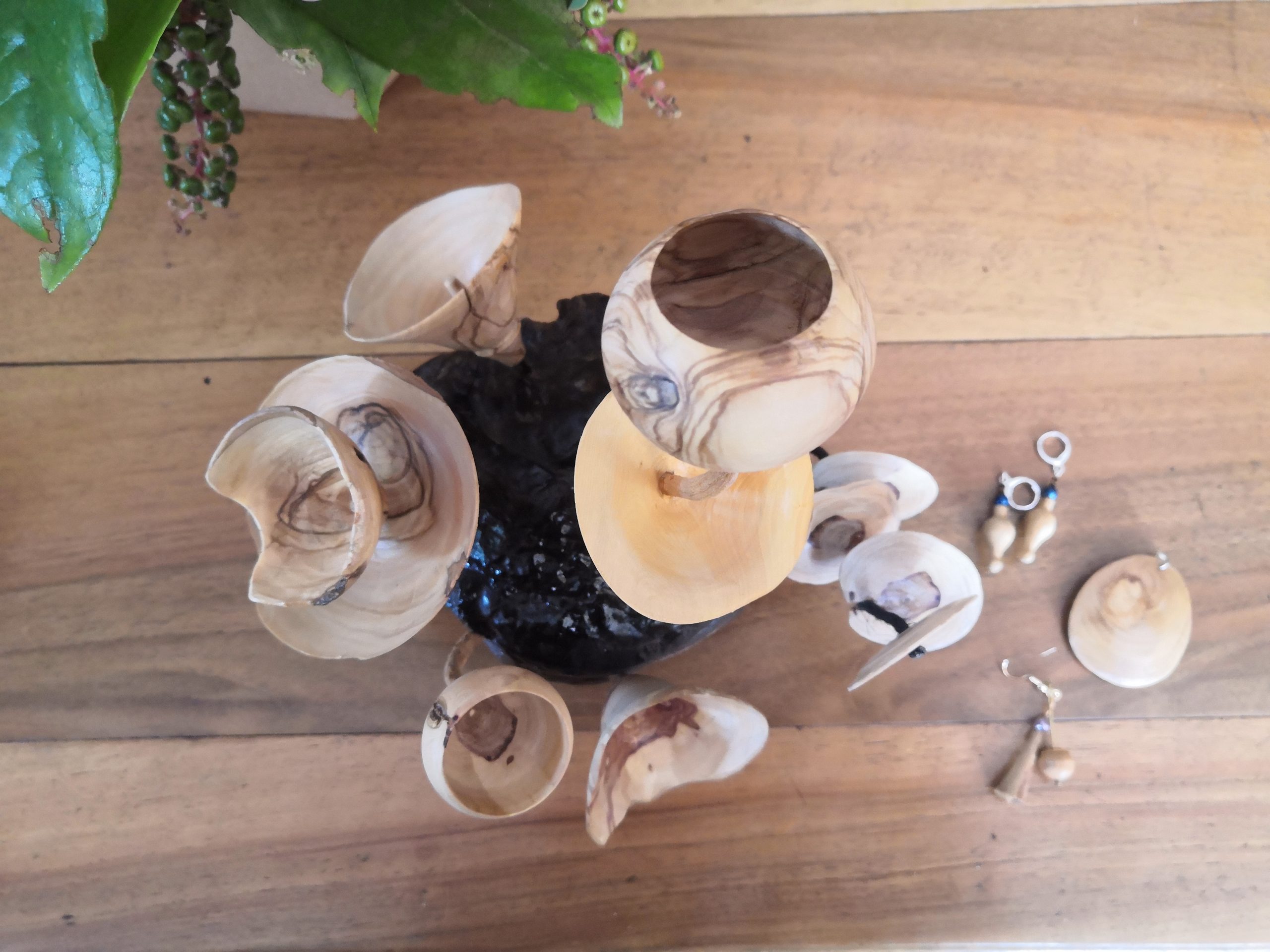 composition florales 4 fleurs + socle ; bois variés – selon disponibilité) ; DISPONIBLE SUR COMMANDE UNIQUEMENT